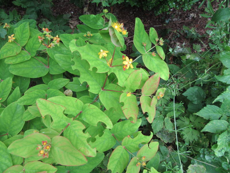 This is a little male Willughby’s leafcutter bee and a Tutsan plant whose leaves the females are fond of to make nursery cells for their babies.