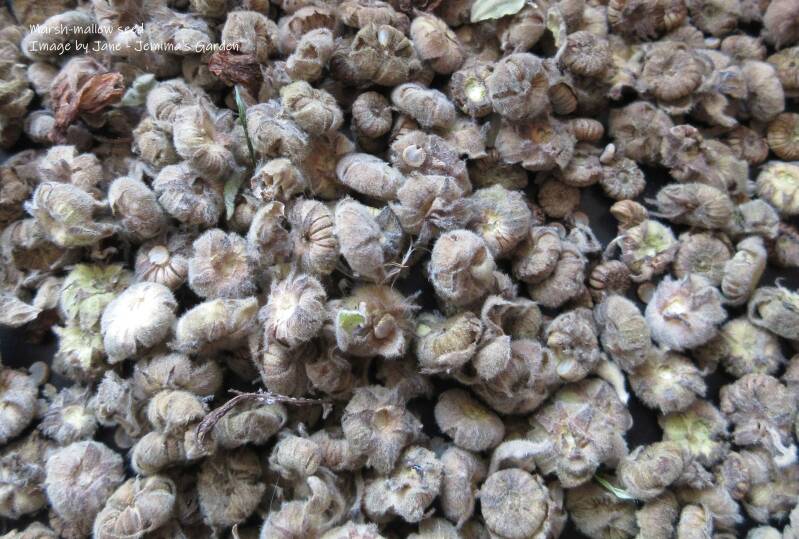 Once dry, seeds are then shaken from their pods, or for example, in the case of these Marsh-mallow seeds, separated from each other.