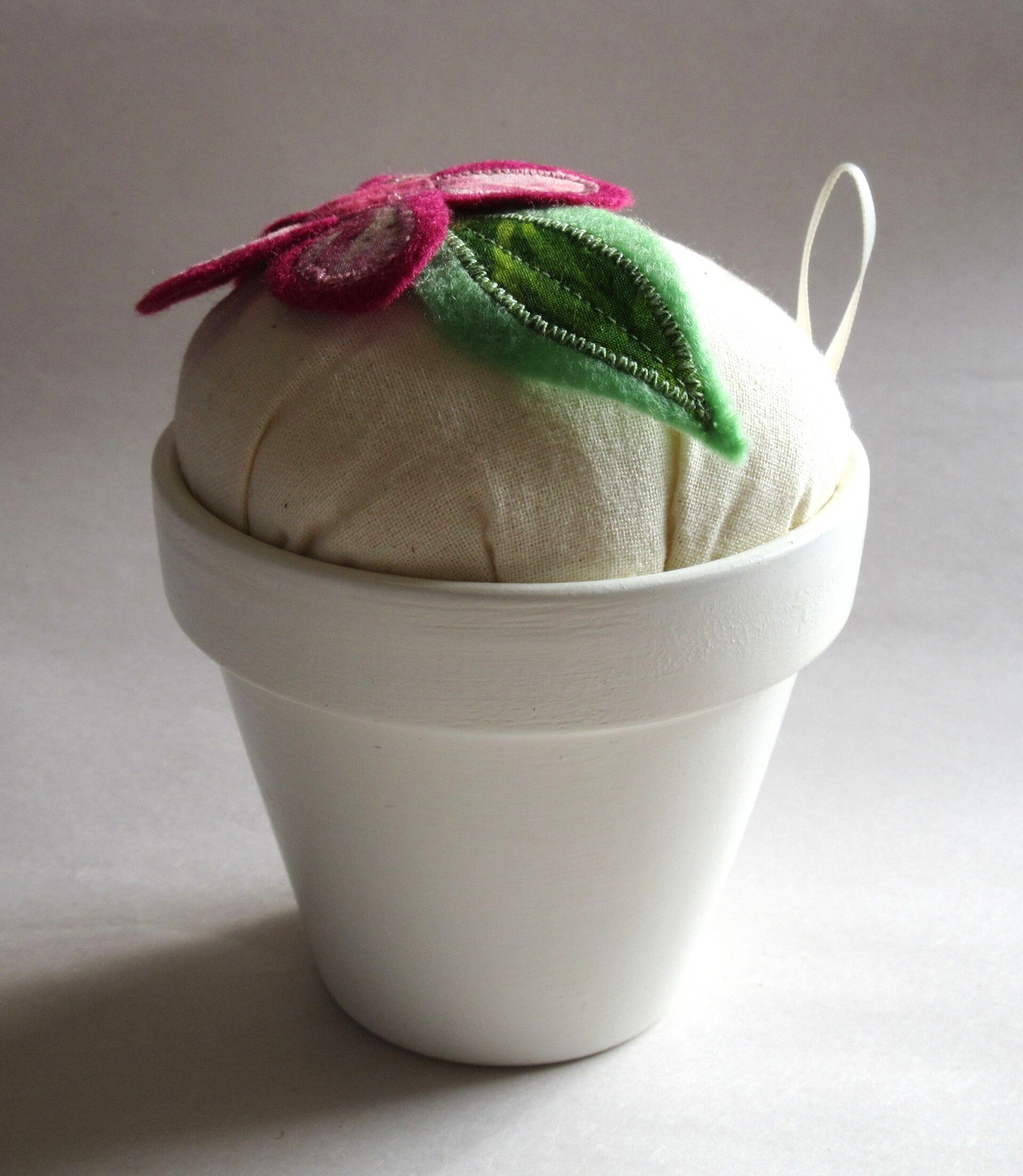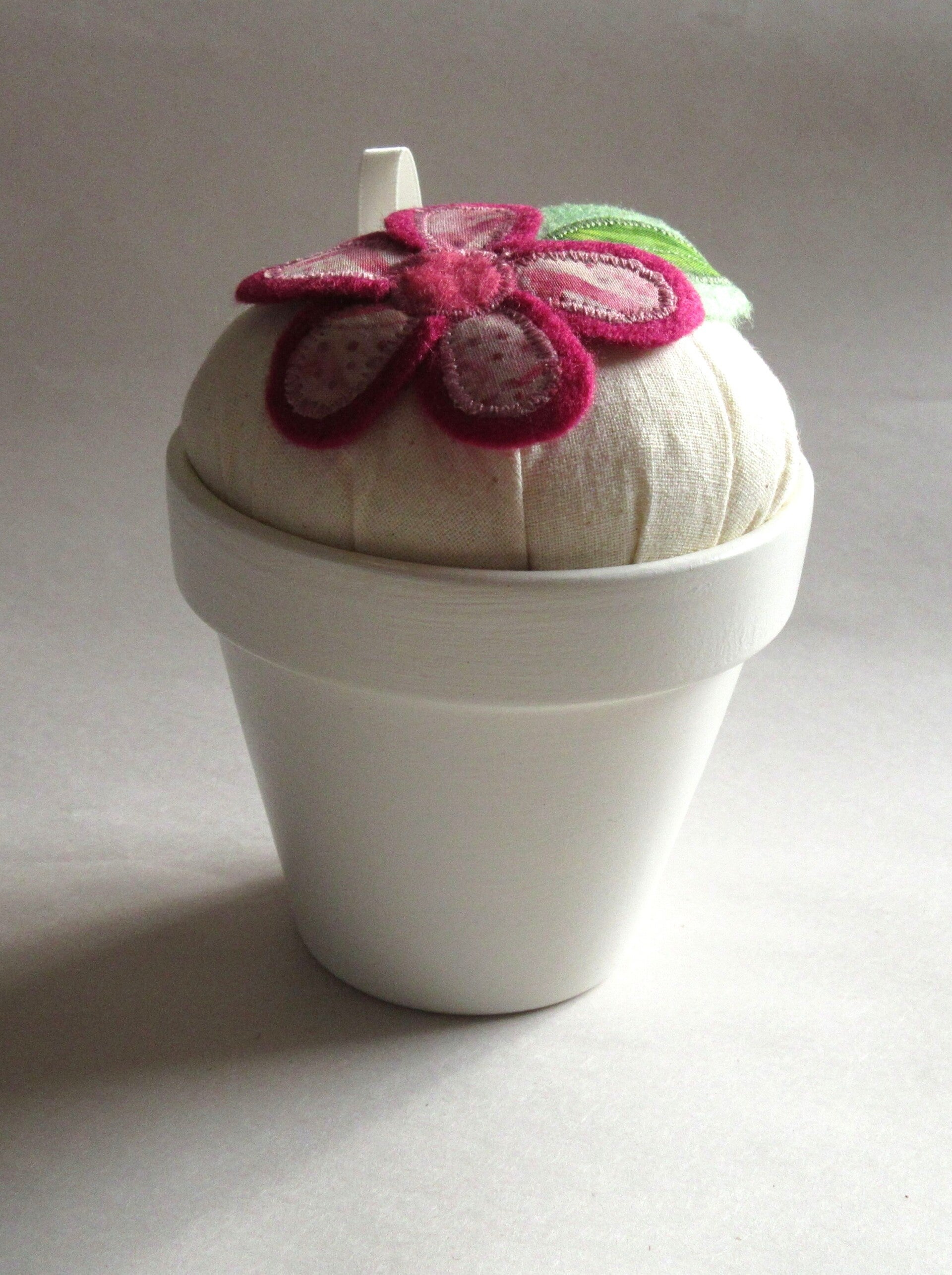 Flowerpot Pincushion - Pink Flower - Large