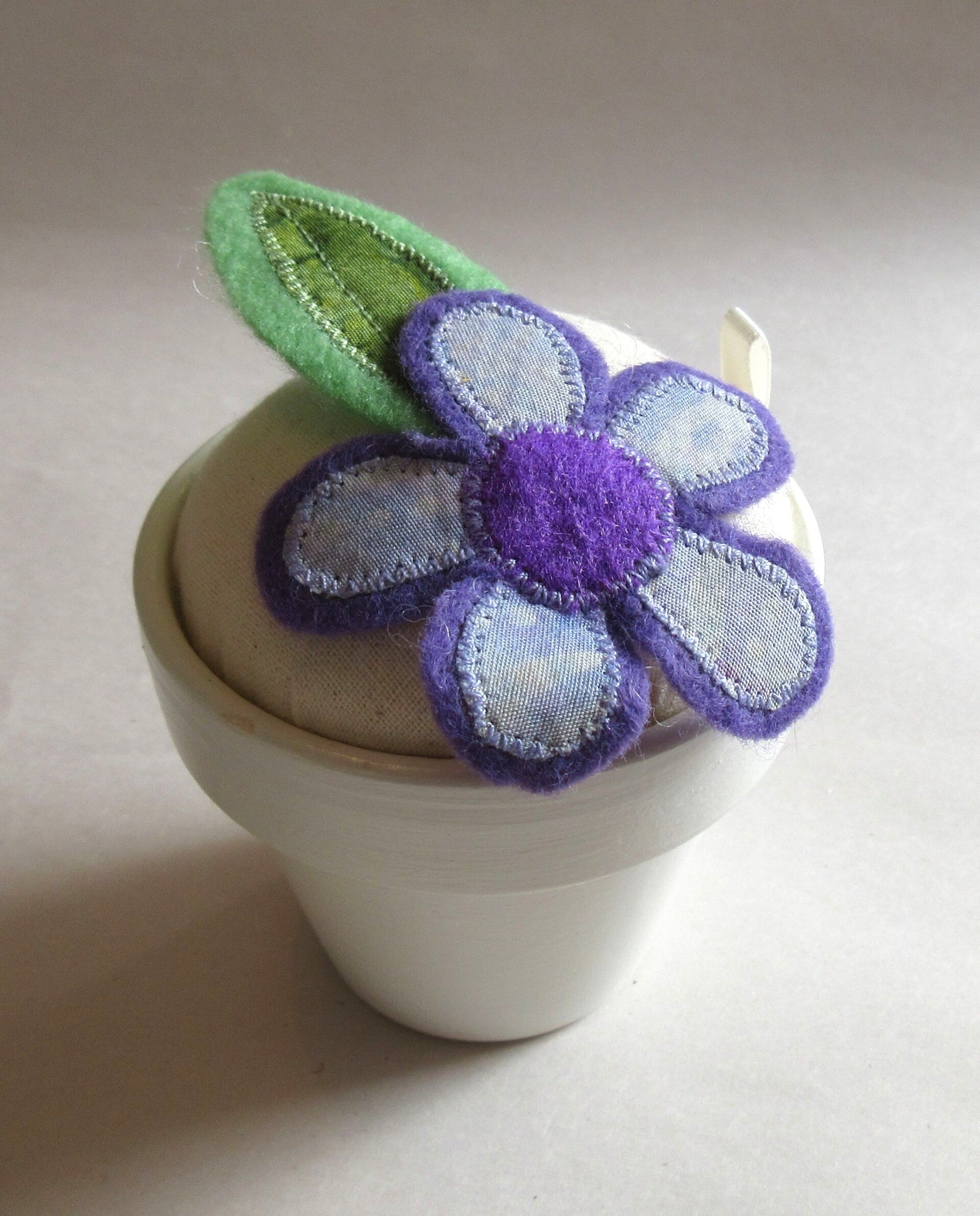 Flower Pot Pincushion - Purple Flower - Small