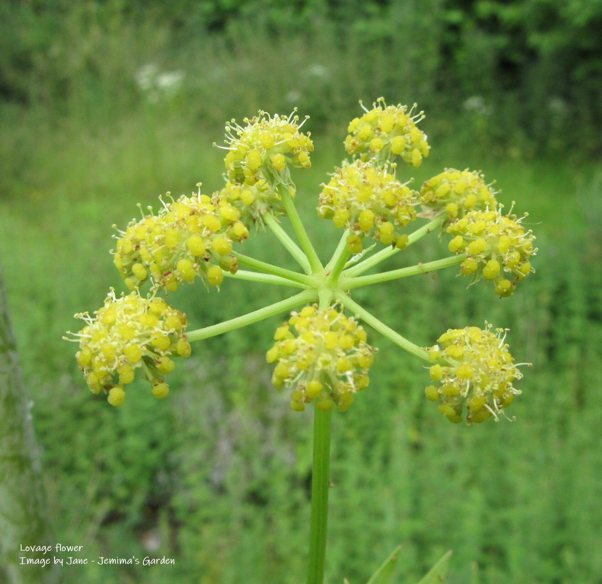 Lovage is a tall plant with celery flavoured leaves and yellow clusters of flowers in summer.