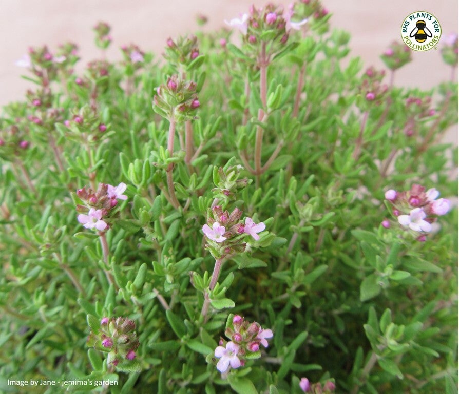 Common Thyme has tiny leaves and mauve flowers in spring and summer which are very popular with pollinators.