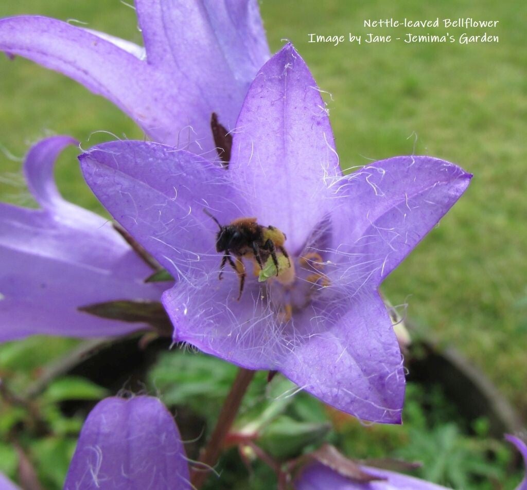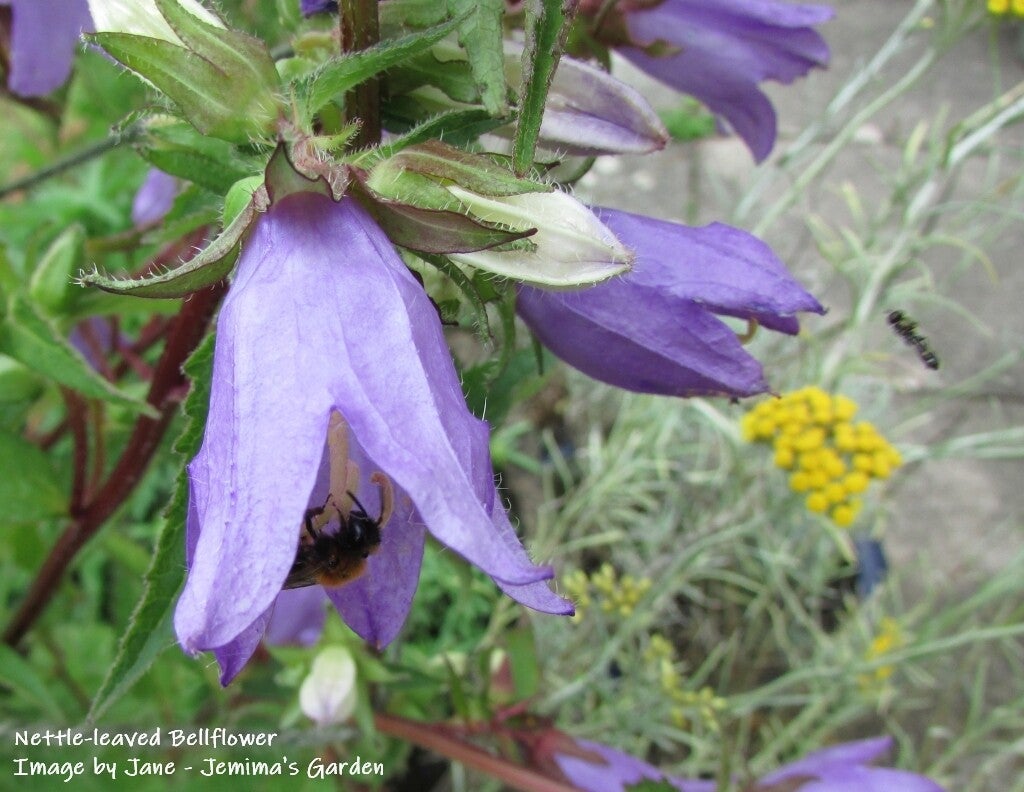 It has very pretty blue bell-shaped flowers between June and September which provide forage for Bumblebees and some solitary bees.